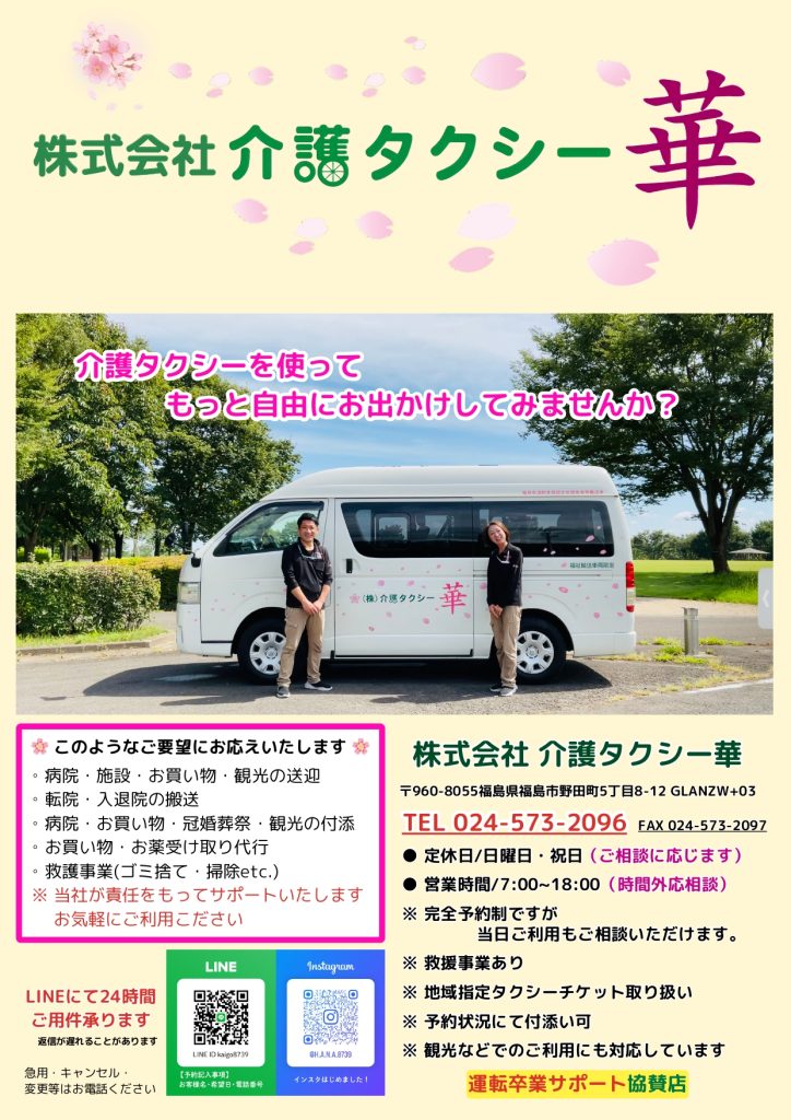 今回はたまたまチラシを見かけて問い合わせてみた『介護タクシー華』さん。
